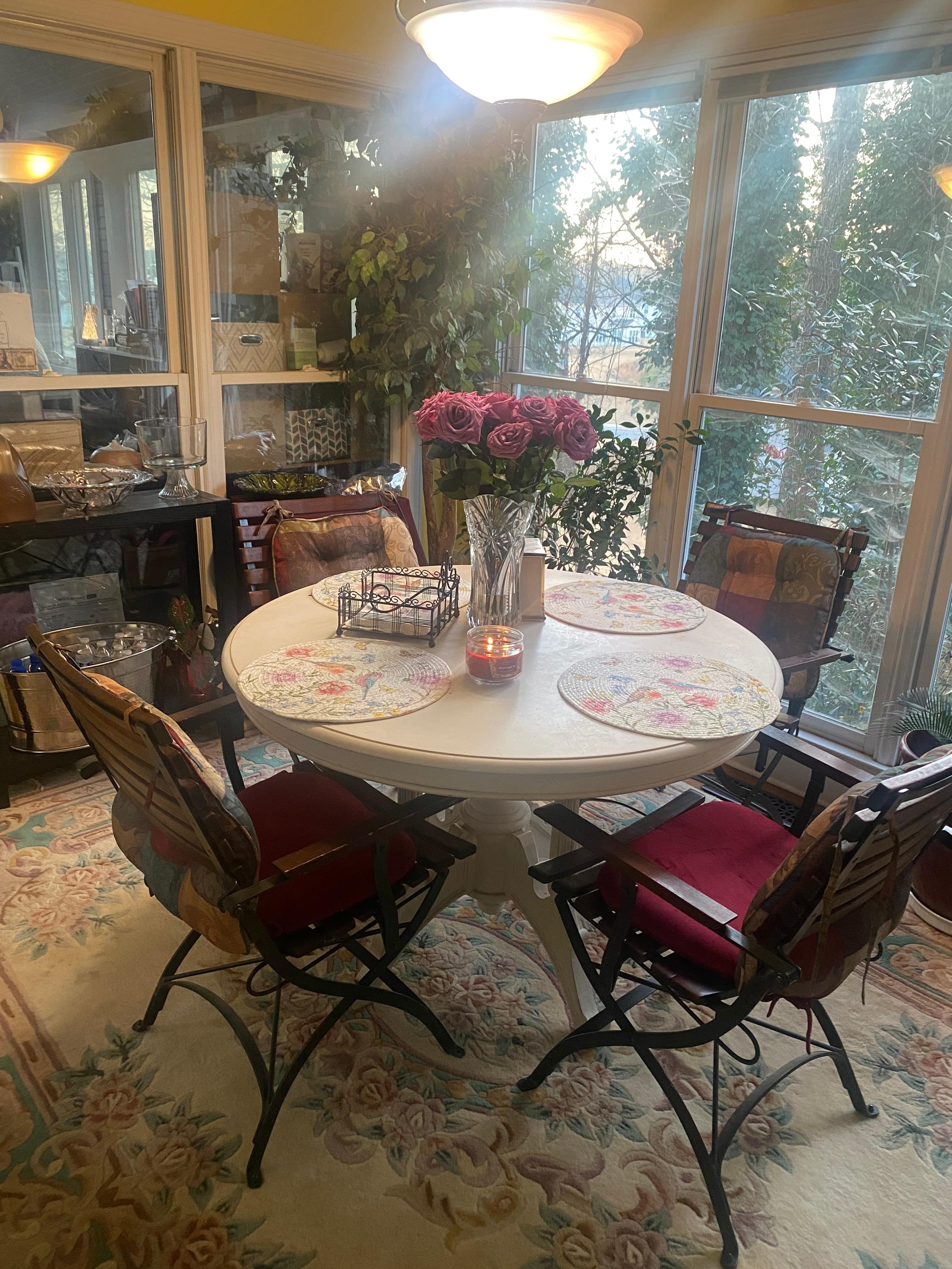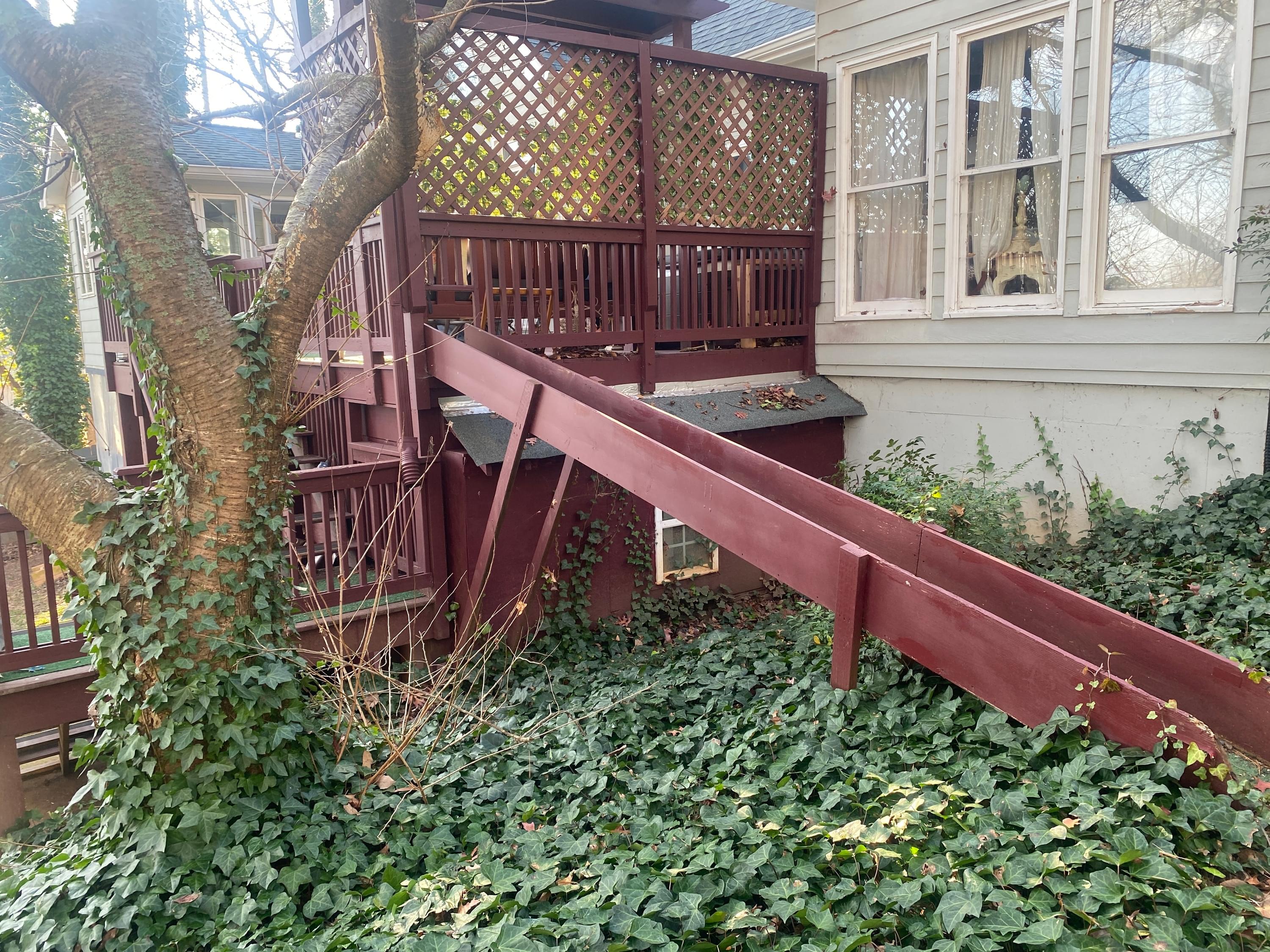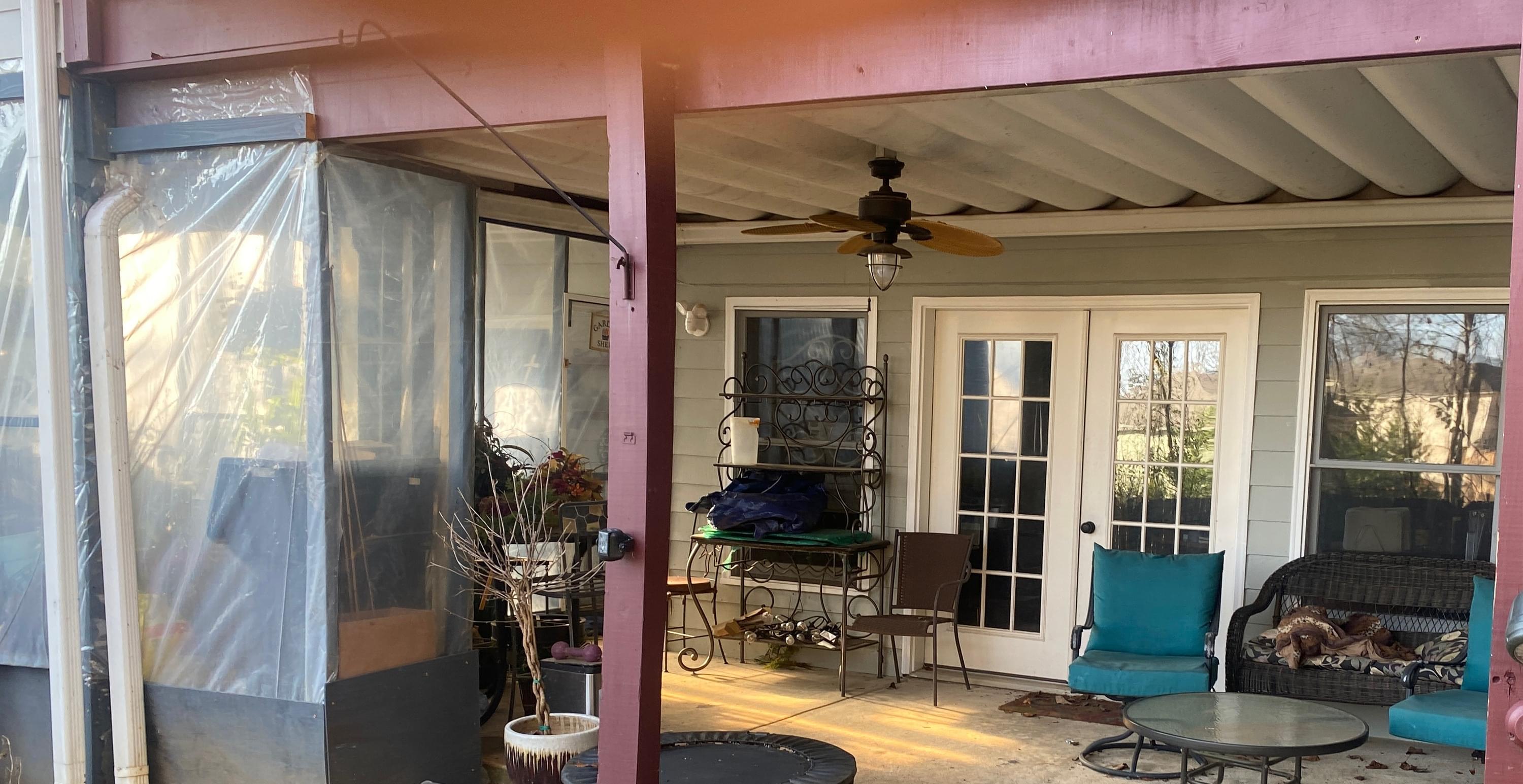 The master bedroom has a sitting area attached to newly redesigned (2025) two vanities, bath, shower and jacuzzi tub. Master features a spacious walk-in closet. Access to the deck and hot tub is through a sliding glass door off the master. A specially custom designed swing awaits you on the deck that was modeled from the actual plans from The Greyfield Inn resort on Cumberland Island. We loved it so much we got the actual plans and built the swing for the expanded deck. The deck has a ramp for our blind dog and a doggie door that is off the sunroom that was built in 2016. The owners live in that sunroom among the trees and open breezes from the 360 degree surround windows.